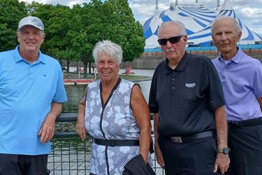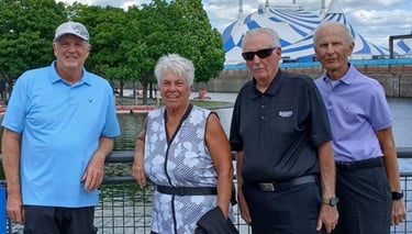 The Leatherneck Warriors entered a 10-person mixed boat in the Senior D Class in the Pan American Club Crew Champions in Montreal, Canada. The Warriors Eleven (not to be confused with Oceans Eleven) made the 1400 mile trek to Canada and spent 4 days racing and enjoying Montreal. The team of Carol, Sue N., Bob G., Dottie, Earl, Ron, Tom U., Don B., Betty, Renie and Joe K were led by Captain Robin Lockerby and joined by Mary Ann (in the role of Julia Roberts?) who acted as team photographer and all-around helper.