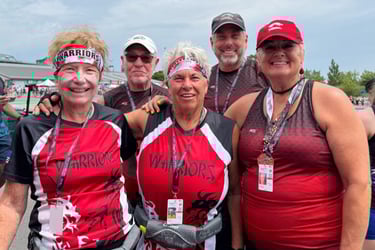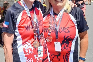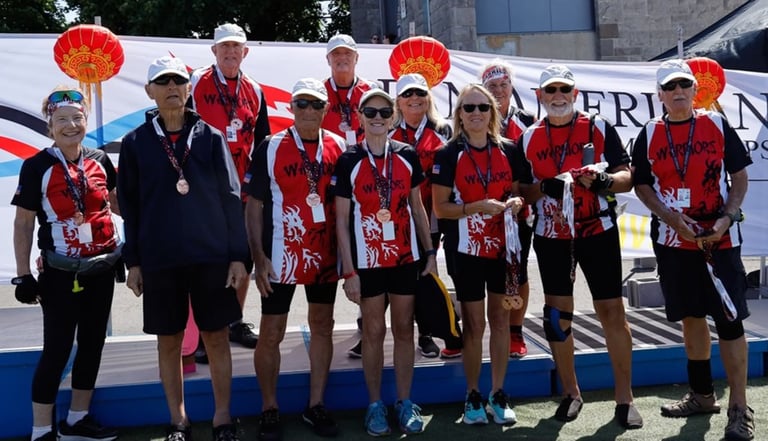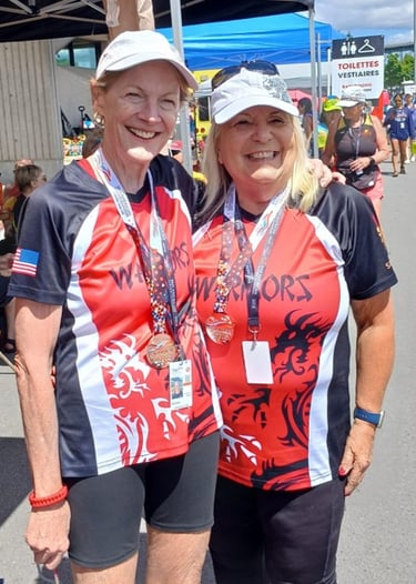 Robin was impressed with the spirited enthusiasm and commitment shown during each race. "We worked together as a cohesive unit and critiqued each race by discussing what could be done more effectively to create a stronger boat". It was a team effort from the opening ceremony with Bob Gamble and Sue Nordick as flag bearers to the VIP event with Dottie, Ron, and Robin networking with other team managers, to the medals ceremony with Our Warriors Eleven collecting their medals and congratulating the other teams.